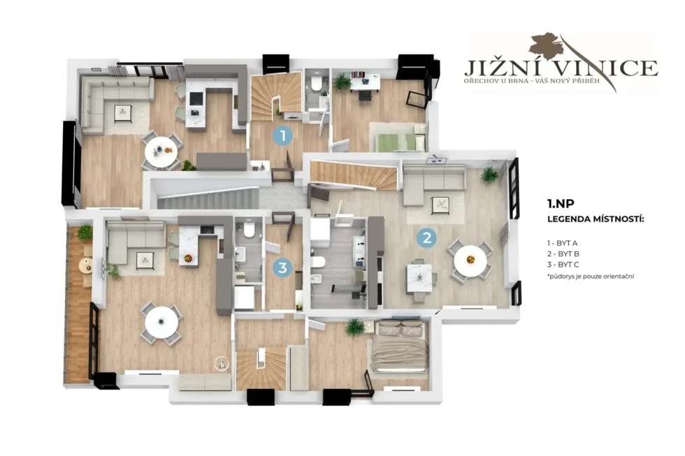 Rozloha bytu více než 100 m² v dispozici 4+kk, která Vám nabídne prostor, soukromí a pohodlí srovnatelné s rodinným domem také díky vlastní oplocené zahradě.